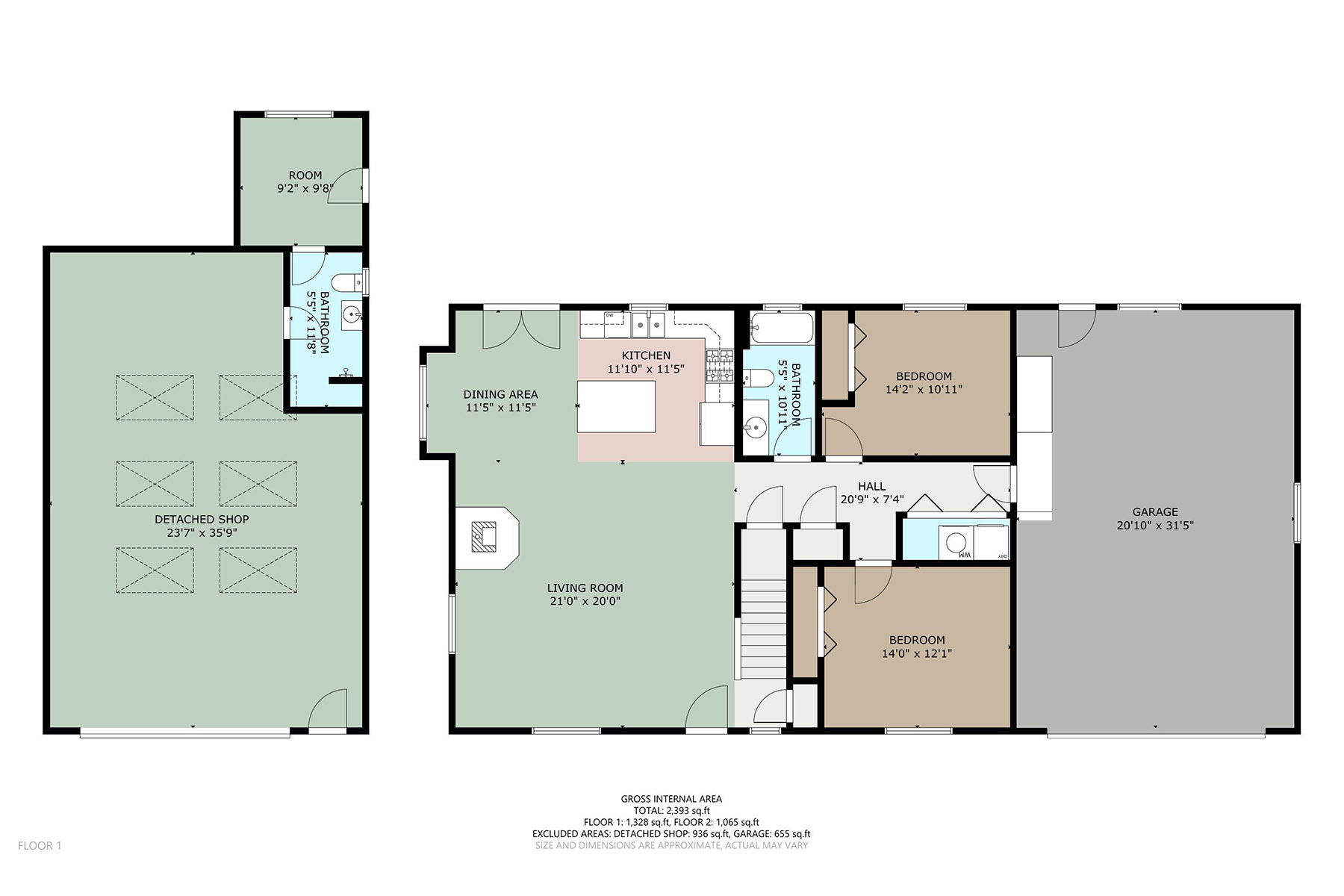 - Garage 2 Car Attached + Shop