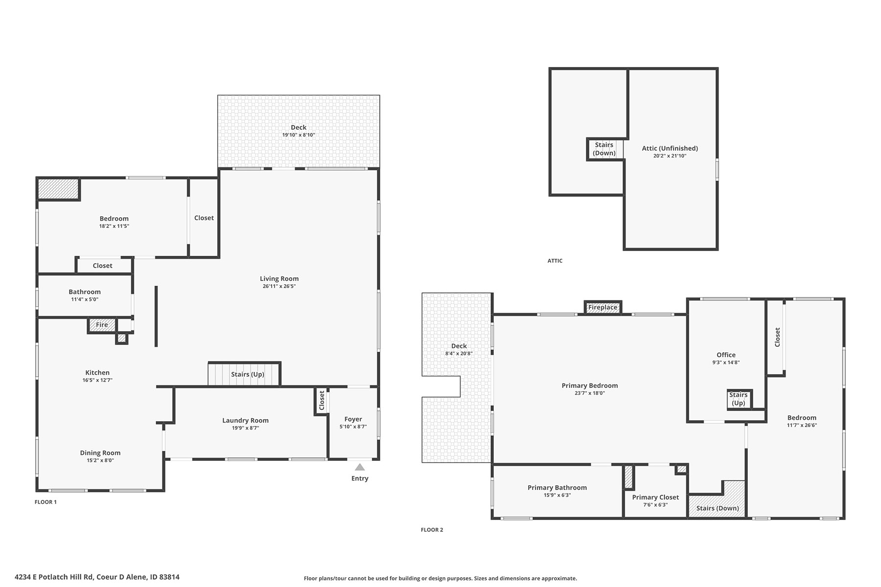 The existing 2,700-square-foot, 3-bedroom, 2-bath home is thoughtfully oriented to capture the views, with decks and patios on multiple levels that create a seamless indoor-outdoor flow. The home is livable but could benefit from updates—or presents an exceptional tear-down opportunity to design and build your dream North Idaho retreat from the ground up.